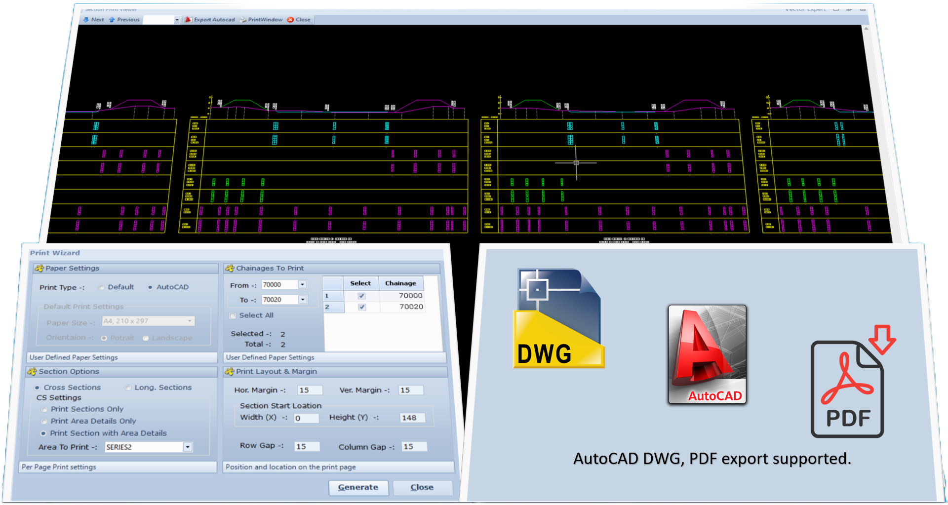 Save time and maintain consistency in your design with template-based sections. CivilSurvey Expert offers customizable templates, enabling you to quickly generate sections that align perfectly with your requirements.